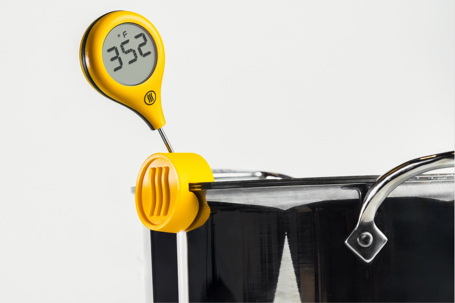 Keep your probe exactly where it should be—steady, centered, and hands-free. The Hi-Temp Silicone Pot Clip grips the edge of cast iron, stock pots, Dutch ovens, and more, holding Pro-Series® and other probes at the perfect depth for accurate readings in hot oil, simmering sauces, candy, or sous vide. Rated to 600°F and built from a single piece of our proprietary silicone, it won’t scorch, slip, and it goes straight into the dishwasher when you’re done.